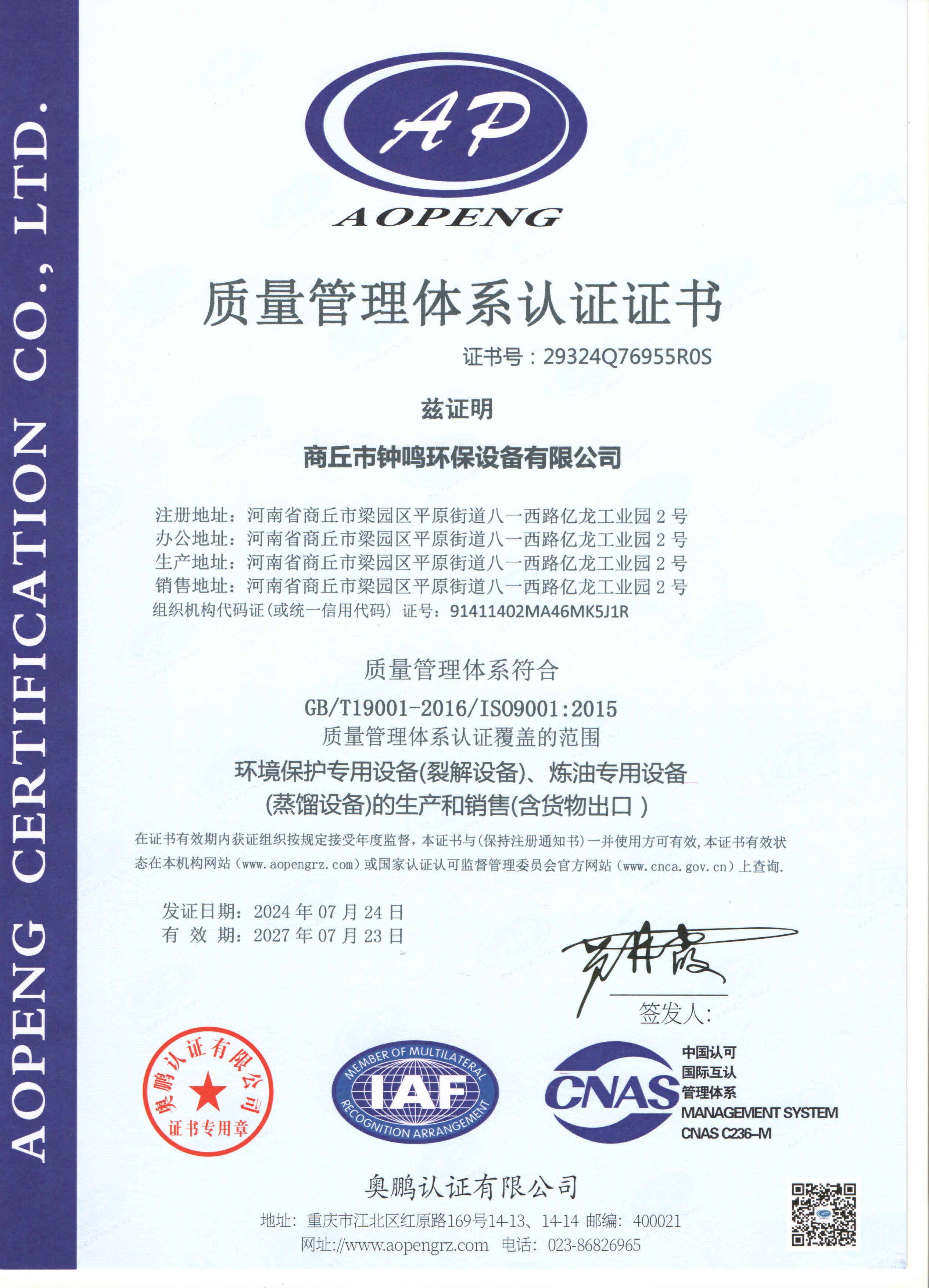商丘市鐘鳴環保設備有限公司是一家集研發、生產和銷售的現代化企業,公司專注于裂解設備和蒸餾設備領域,擁有專業的研發人員3名,工程師6名,技術員18名,公司一貫堅持“質量至上、服務至上”的宗旨,憑借高質量的產品,良好的譽,優質的服務,產品暢銷全國20多個省份,出口馬來西亞、泰國、韓國、菲律賓、葡萄牙、俄羅斯、中東地區等60多個國家。